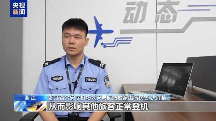 浙江省公安厅机场公安局航站楼派出所民警洪泽楠:尽管机组工作人员不断劝阻他们,尽快回到自己的座位,不要堵塞通道,从而影响其他旅客正常登机。但是这些粉丝仍然不听劝阻,把通道整个堵死,对于一些旅客的合理诉求,他们也不管不顾。