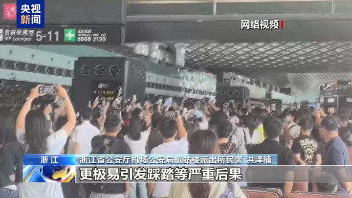 浙江省公安厅机场公安局航站楼派出所民警洪泽楠:针对此类行为,我们提醒大家,理性文明追星,大家在现场都要配合工作人员的指引,建议粉丝和艺人在公开正确的场合见面。如果出现围堵、强行闯关、追逐艺人车辆等行为,不仅严重干扰他人出行和机场的管理秩序,更极易引发踩踏等严重后果,对于此类违法行为公安机关都将依法追究责任。